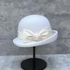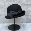 Bow Bowler Hat Women'S Wool Bucket Hat Versatile Elegant Curling Basin Hat