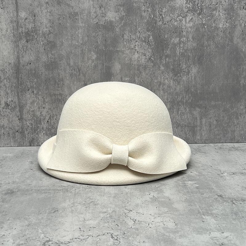 Show Face Little Hepburn Curly Edge Bow White Female Dome Temperament Thousand Gold Fan Woolen Beret