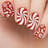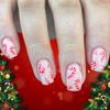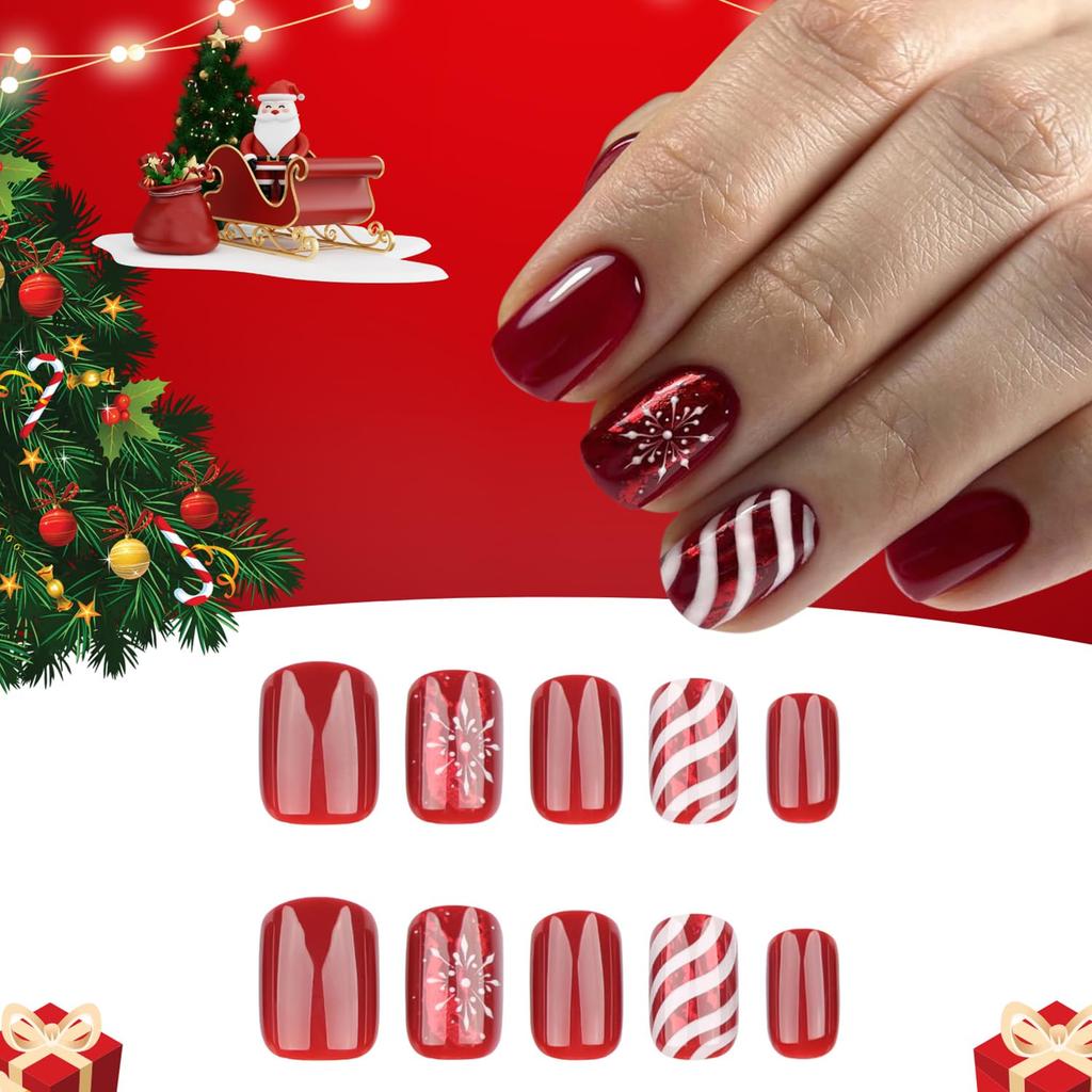 Christmas Press on Nails Short Square Red Fake Nails with Candy Cane Line Snowflake Glossy Designs Full Cover Press ons False Nails for Women 24 Pcs
