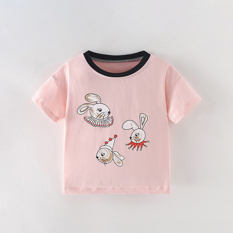 2025 Summer New Style Girls' Short-Sleeved T-Shirt Pure Cotton Children's Top Girl Cartoon Half-Sleeve Children's Clothing Export Base Shirt