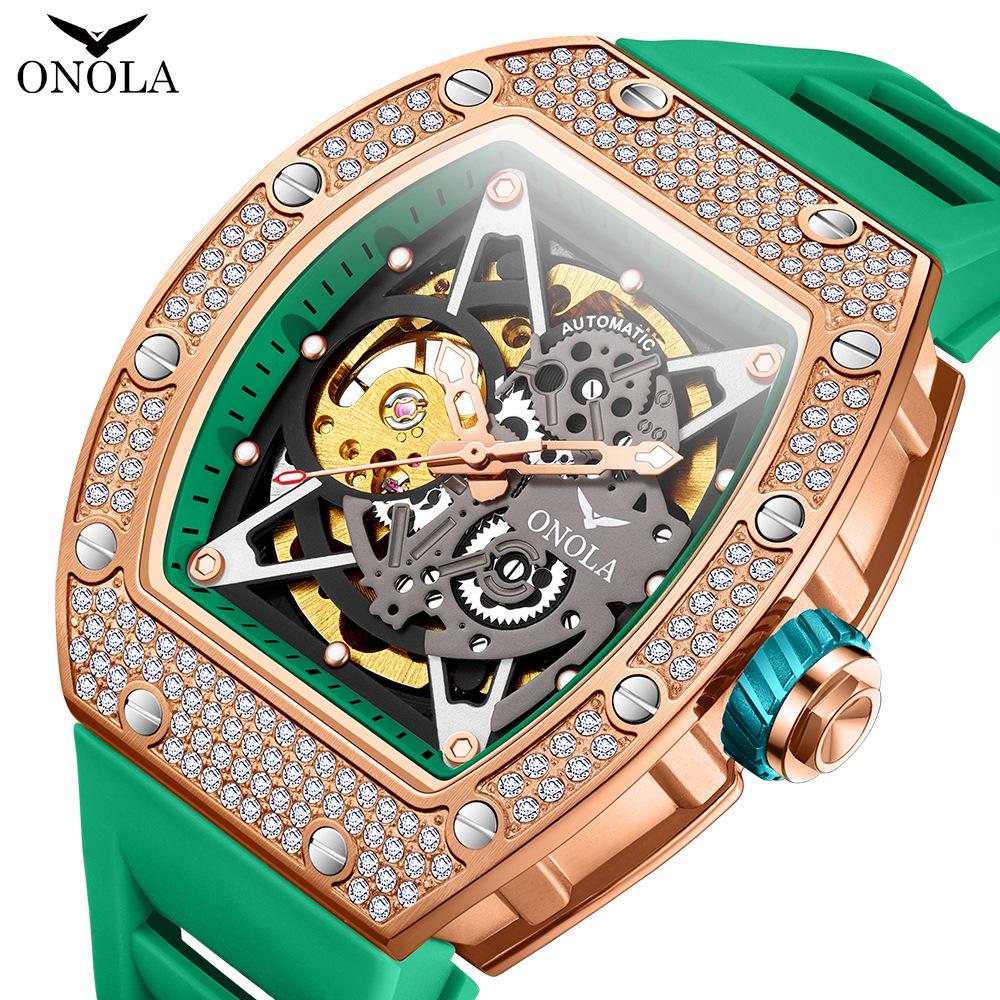 Herren ONOLA Wasserdichte Automatische Mechanische Uhr mit Silikonarmband und Diamantdetail