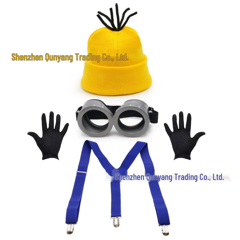 Minion-inspiriertes Strickmützen- und Handschuh-Set mit Brille und Netzrock Kostümzubehör