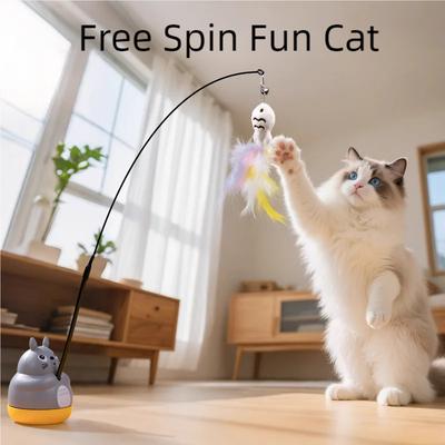 Cat Funny Cat Stick Steel Wire Long Pole Feather Cute Cat Toy Kitten Fishing Rotating Self-pleasure Relief Pet Toy
