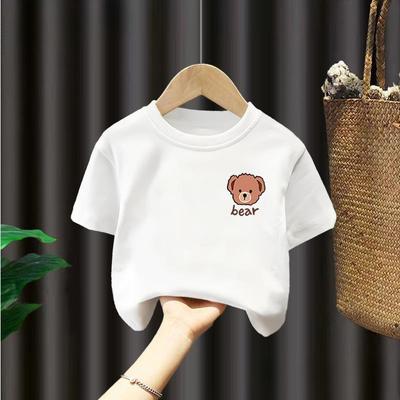 2025 Summer New Style Girls' Tops, Little Girls' Simple Bear Embroidered Kidsren's Clothing, Pure Cotton Short-Sleeved T-Shirts
