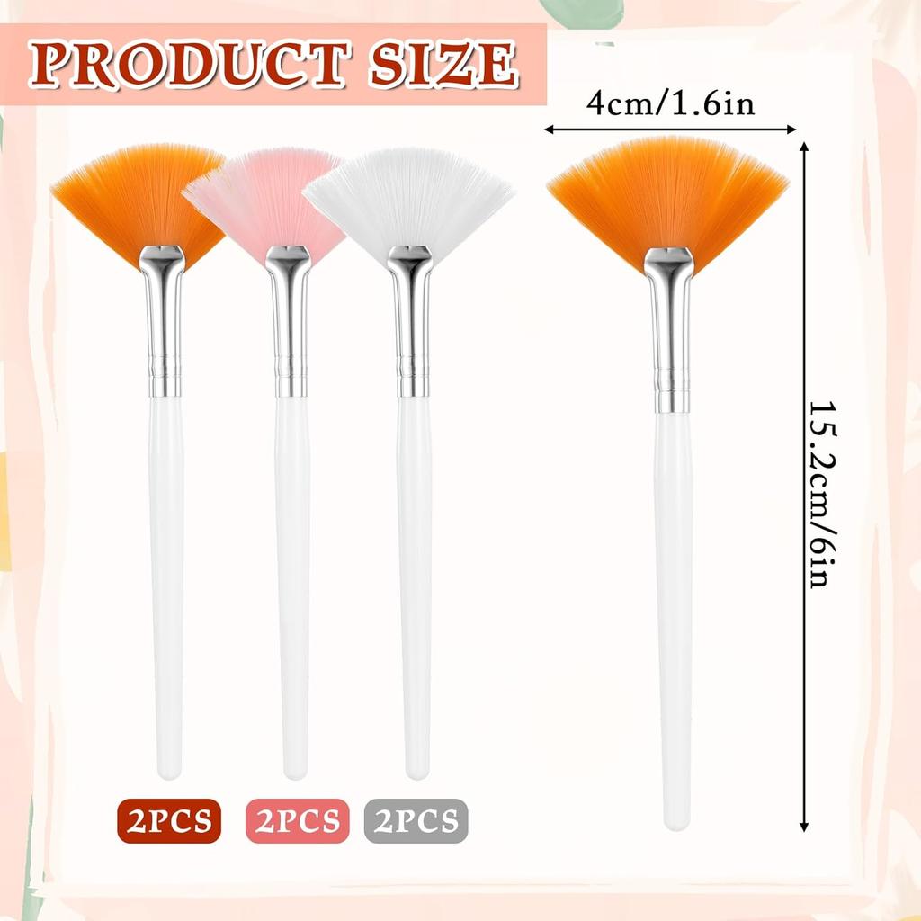 6 Pcs Fan Brushes for Facial, Slim Soft Facial Fan Brush Soft Makeup Brushes Face Mask Applicator for Glycolic Peel Masques Women Mud Clay Mask