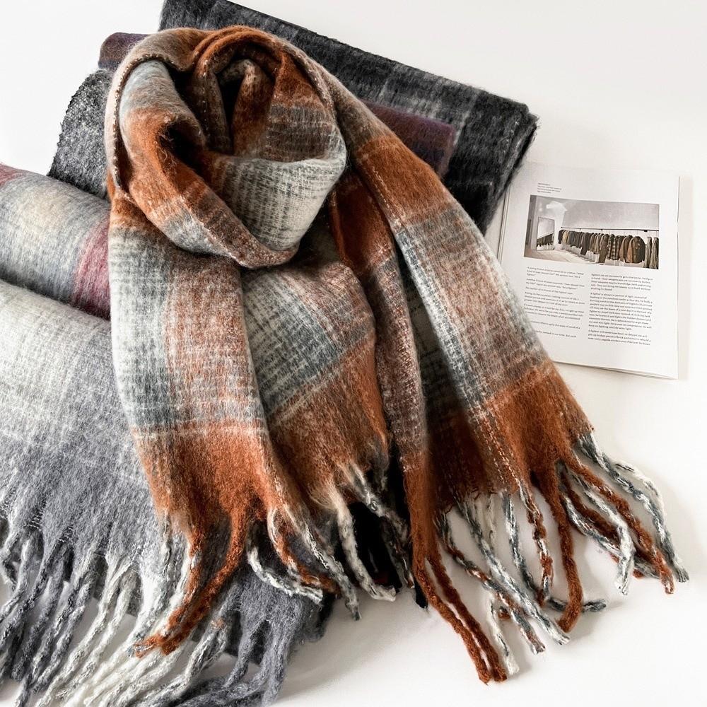 Plush Plaid Wool Scarf Tassel Long Shawl Simple Winter Cashmere Scarves Girl