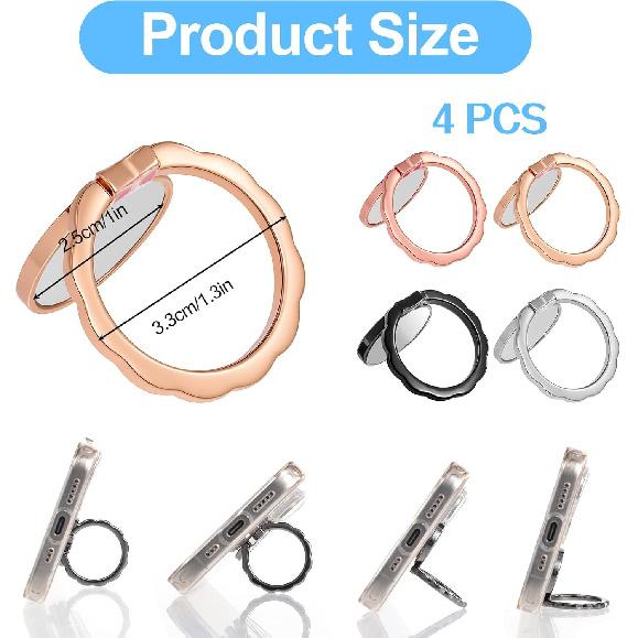 4pcs Mirror Cell Phone Grip Stand Built-in Mirror for Case, Bow Metal Finger Ring Socket Grip Kickstand Cell Phone Ring Holder for Smartphones Mobile