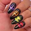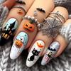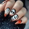 Halloween Press on Nails Medium Fake Nails Almond Shape Halloween False Nail Tips with Pumpkin Star Moon Designs Cute Stick on Nails Glossy Halloween