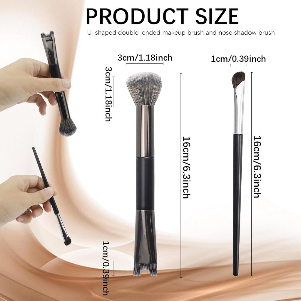 2 Pcs Nose Contour Brushes, 2-in-1 U-shaped Fluffy brush Dual-End Angled Nose Brushes Set Practical Makeup Tools for Nose Sculpting and Definin