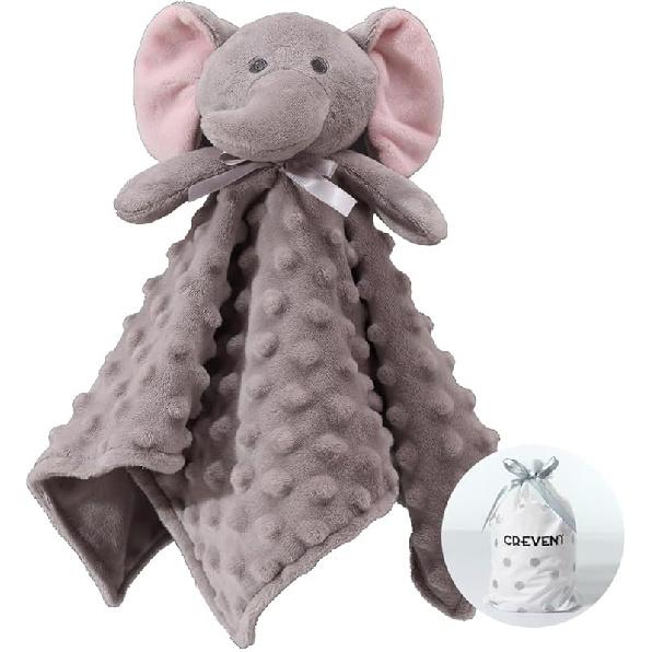 CREVENT Cozy Plush Baby Security Blanket Loveys for Baby Boys and Girls, Minky Dot Front + Sherpa Backing with Animal Head (Grey Elephant + Tag)