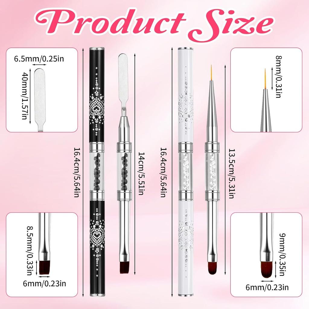 2 Pcs Double Ended Nail Builder Gel Brush, Hard Gel Nail Brush French Tip Brushs Liner Brushes Nails Drawing Brushes for Design