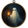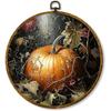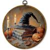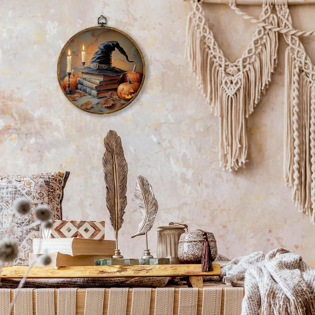shiviody Fall Halloween Pumpkin Canvas Wall Art Decor, Autumn Halloween Hat Wall Art, Dark Moody Thanksgiving Round Hanging Frame Prints Decorations