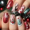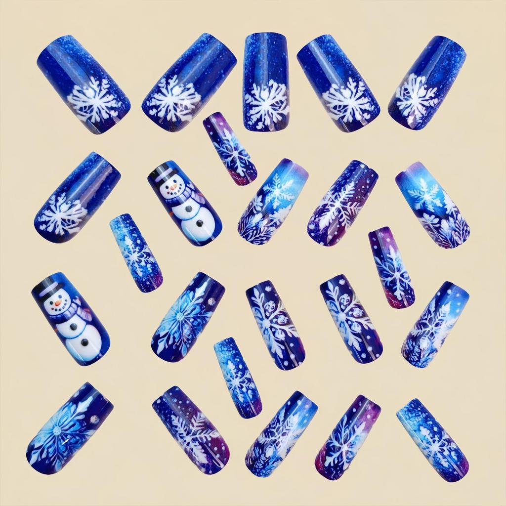 Snowflake Press on Nails Christmas Long Square Fake Nails Winter Snowman Acrylic Glue on Nail Glossy Xmas Stick on Nail for Women