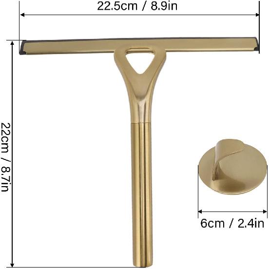Shower Squeegee for Glass Doors with Adhesive Hook Gold Window Squeegee Rubber Scraper for Bathroom, Window, Mirror, Car Glass, Tile Wall
