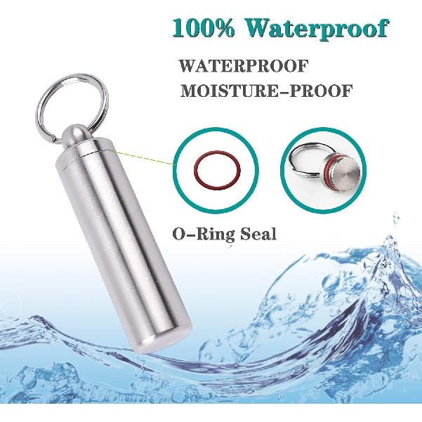 Pill Holder Keychain,Portable Waterproof Single Chamber Stainless Steel Pill Container,Small Pill Box Case for Outdoor Travel Camping - 2 Pack