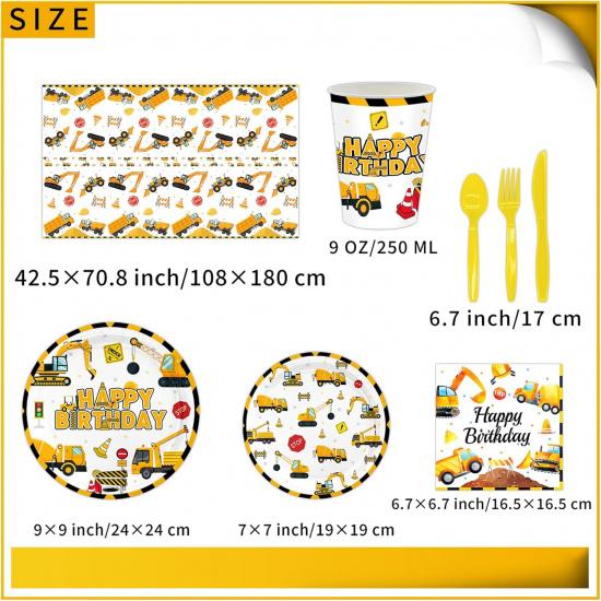 81 Pcs Construction Birthday Party Supplies Decorations Includes Tablecloth, Plates, Napkins, Cups and Tablewares for Boys Kids Construction Tractor