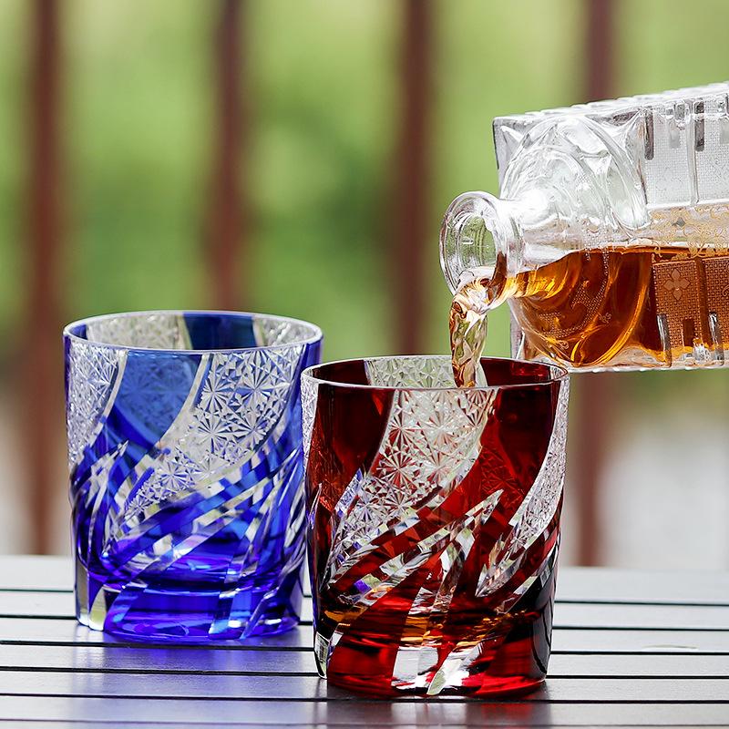 Jinzhi Japanisches Edo-Schliff-Kristallglas Weinglas Whiskey Flammenmuster Handgeschnitzte Schale Leichter Luxus