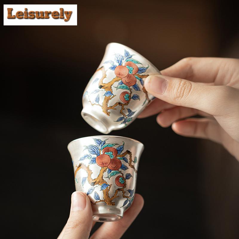 50ml Vergoldet Silber Kaki Ruyi Teetasse Retro Teeschale Wasserkrug Teeverkostungs-Meditationsbecher Chazhan Meistertassen Chinesisches Teeset