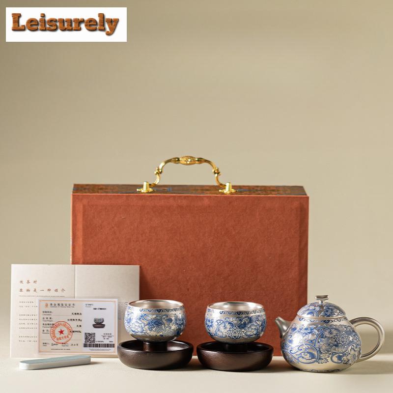 Handmade Gilt Silver Twining Lotus Tea Set Complete Japanese Tea Ceremony Set Teapot And Tea Cup Set Chinese Tea Set Collection