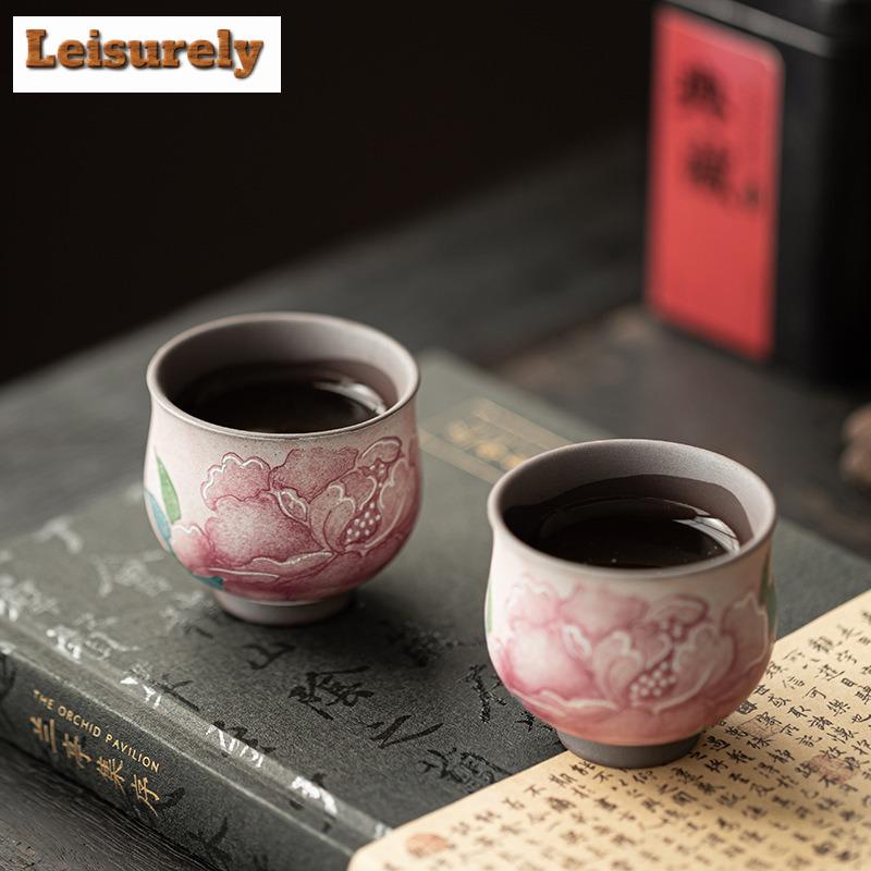 Alter Fels Ton Leichtes Make-up Pfingstrose Teetasse Antike Teeschale Niedliche Tasse Teeverkostung Meditationsbecher Chazhan Meistertassen Teeartikel Geschenk