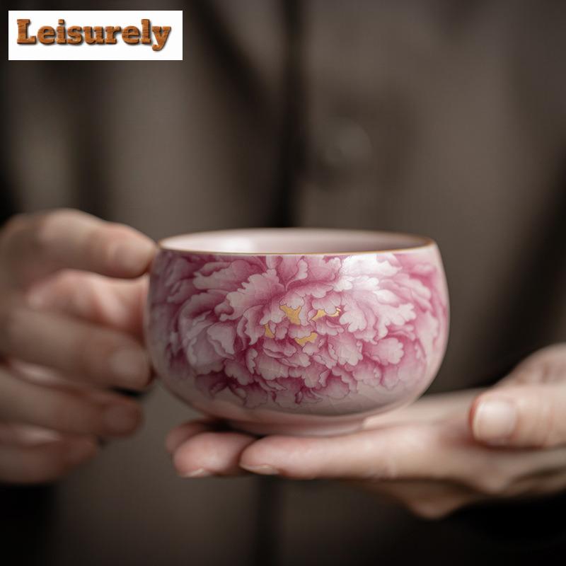 80ML Antikrosa Pfingstrose Ru-Ofen Teetasse Antike Teeschale Set Tassen Persönliche Tasse Jianzhan Blütentee Haushaltsgeschirr