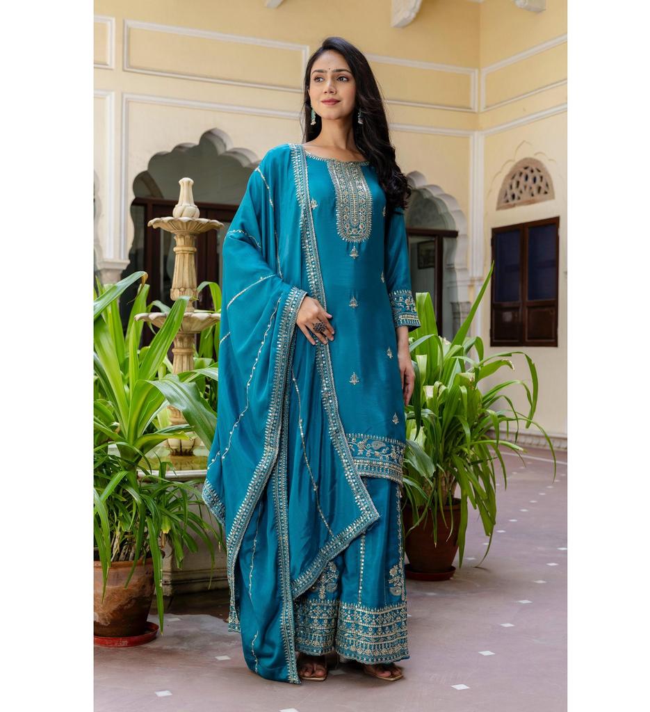 Indian Designer Party Wear Salwar Suit Palazzo Set Women Bollywood Chinon Silk Salwar Kameez