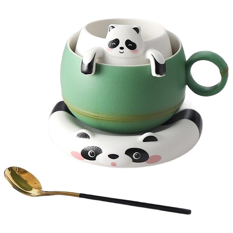 A95I-Bambus Panda Filter Tee Trennbecher Japanische Teetasse mit Sieb Haushalt Teezubereiter Büro Wasserbecher Teeset Geschenk