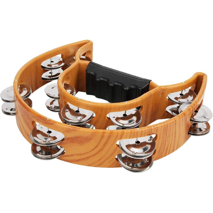 Tambourine, Double Row Metal Jingles Hand Held Percussion Tambourine Half Moon Handbell Musical Instrument with Ergonomic Grip for Adults