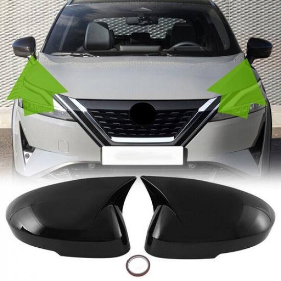 For Nissan Rogue ~2024 Gloss Black Side Rearview Door Wing Mirror Cover Cap