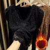 Pullover Oberteile Damen Langarm Herbst Winter Gepolsterte Bluse Übergroß V-Ausschnitt Locker Langarmshirt Slim Pullover Oberteile