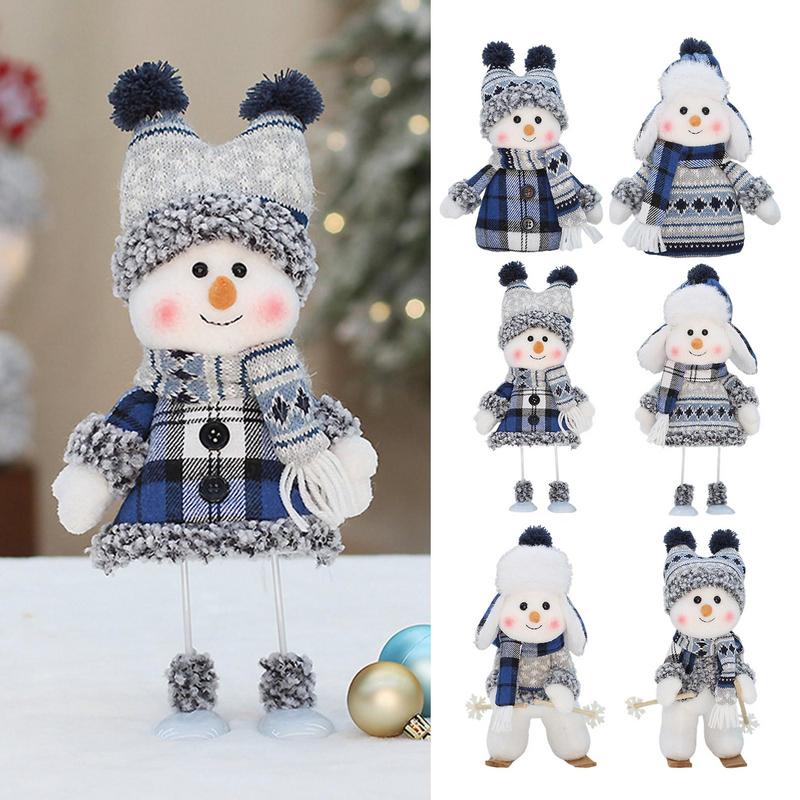 Christmas Blue Series Snowman Cloth Retractable Dolls Decoration for Tree Ornaments Santa Figurine Xmas Gifts Craft Home Decor