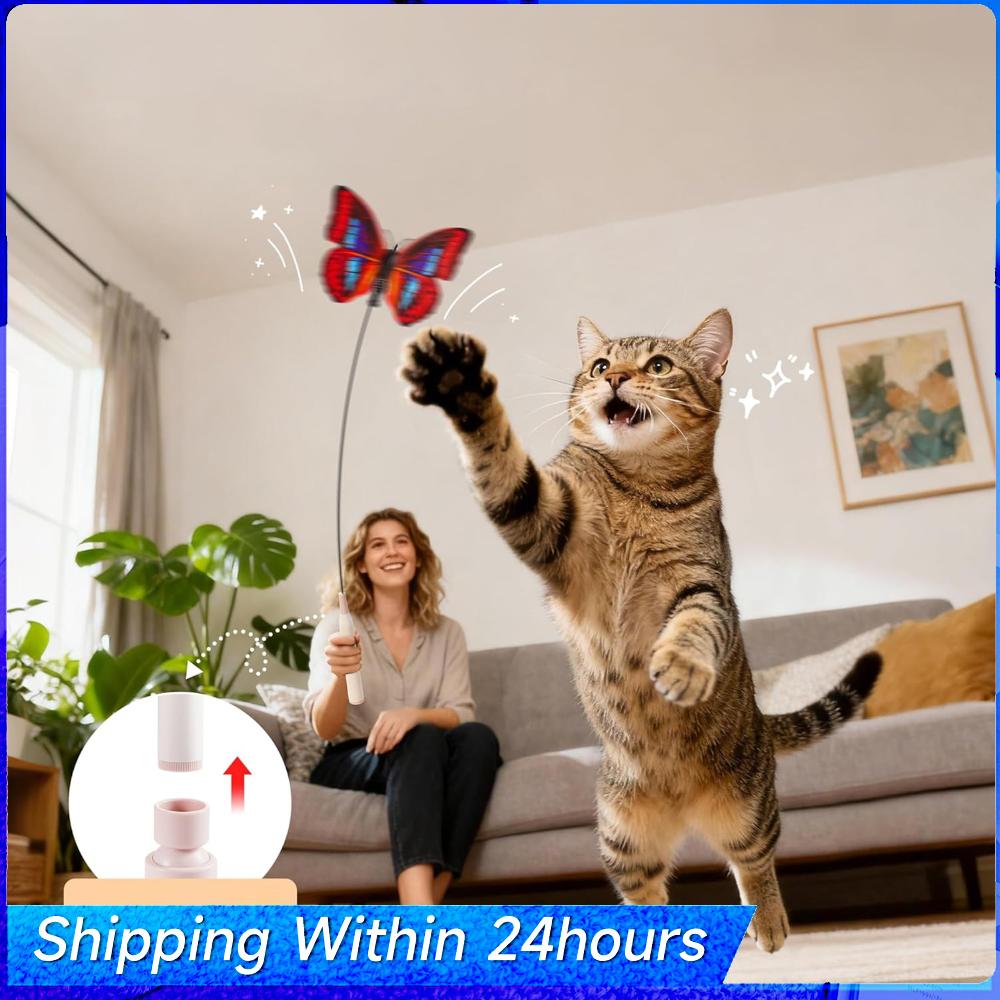 Flutter Rotierende Kätzchenspielzeuge Spinnendes Schmetterling Katzen Spielzeug Angelleine Automatisches Katzen Reizspielzeug für Wohnungskatzen