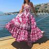 Frühling Neu Damen Bohemian Elegant Midi/Maxi Bedrucktes Trägerkleid