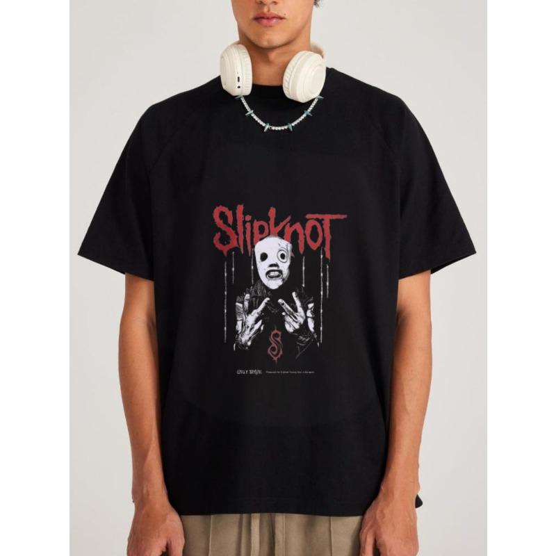 Weißes T-Shirt Slipknot Bandlogo und Charakter Grafikdruck Unisex Freizeitkleidung für Musikfans und Alltagsstil