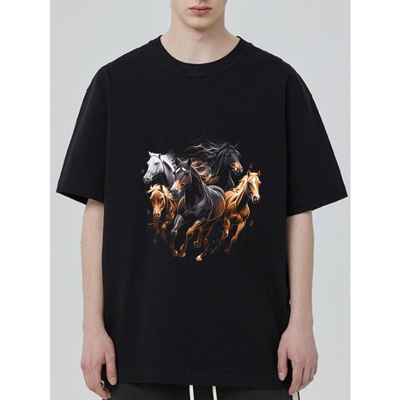 Schwarzes T-Shirt mit Galoppierende Pferde-Aufdruck für Freizeitkleidung