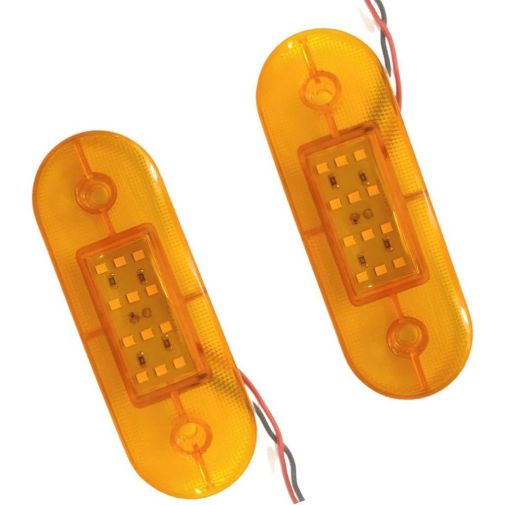 APSMOTIV 2Pcs Amber Indicator Rear Side Truck Trailer Rv Cab Boat Bus Lorry Led Marker Light 12V Running Board Lights For Trucks Flat Fit Base