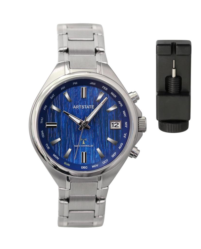[ARTSTATE AS3291A] Men's Radio-Controlled Watch, Blue Dial, Stainless Steel Band, Date Display, Long Life