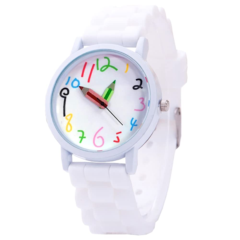 RioGrande Herren-Freizeitarmbanduhr mit buntem handgeschriebenem Zifferblattdesign und Silikonarmband (Weiß) ZM-WATCH7118-WH