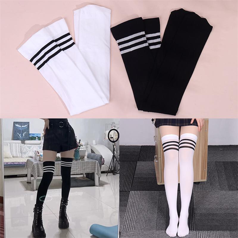 Winter-Beinstulpen für Damen, Overknee-Socken, schwarz-weiß gestreift, lange Socken, Gothic, Y2k, Lolita-Strümpfe für Damen und Mädchen