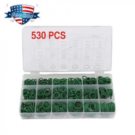 530Pcs Green HNBR O-Rings Seal Kit for Air Conditioner A/C Compressor 18 Sizes
