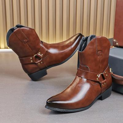 Mode Handgefertigte Herrenstiefel Vintage Cowboy Stiefel Leder High Top Freizeitschuhe Schnallenriemen Punk Schuhe Spitze Zehenpartie Herren Motorradstiefel