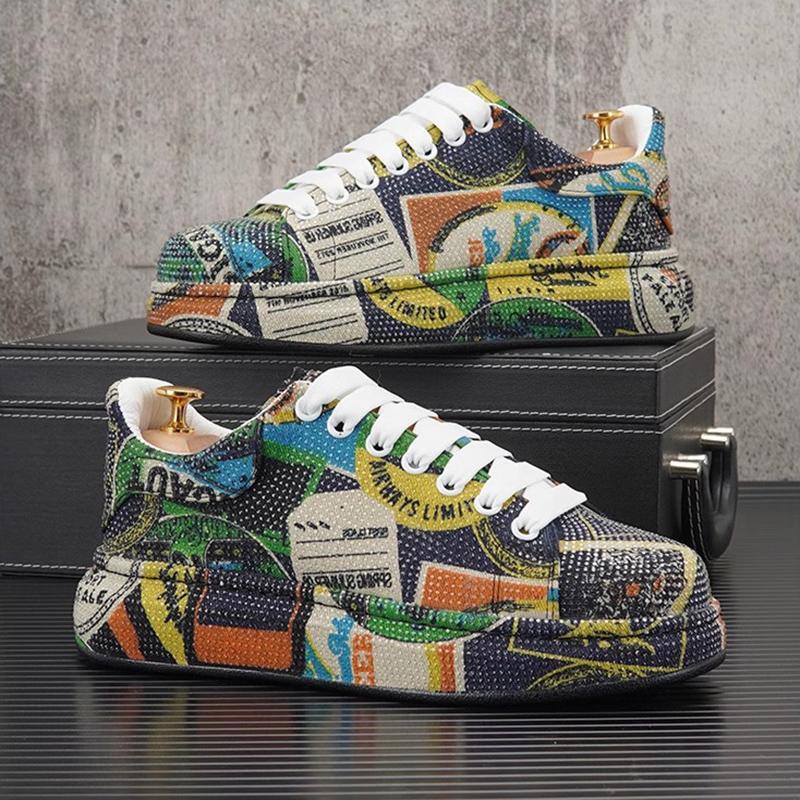 Mode Luxus Strass Sneaker Herren Plateau Freizeitschuhe Runde Zehenpartie Schnürschuhe Wanderschuhe Herren Einfarbig Kristall Designer Sneaker