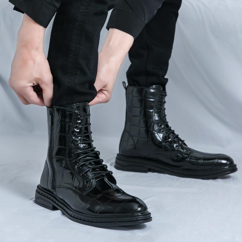 Mode Hohe Qualität Herren Leder High Top Stiefel Trendig und Modisch auf der Straße Bequem und Langlebig Outdoor Herren Chelsea Stiefel