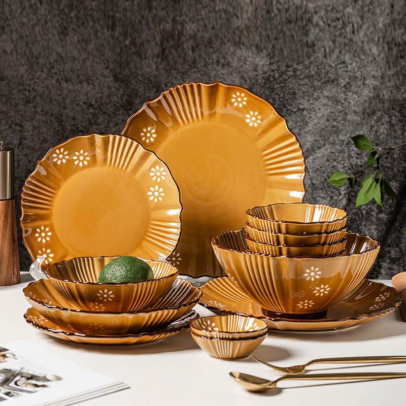 European Light Luxury Retro Style Dish Set High Sense Household Plate Underglaze Color Tableware Ceramic Soup Bowl Rice Bowl