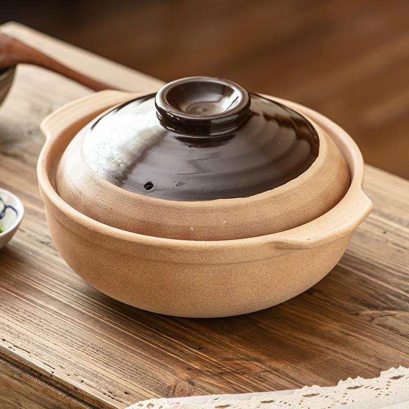 Hochtemperaturbeständiger Topf mit Deckel Erdtopf Haushalt Traditioneller Kochtopf Praktischer Zweiohriger Suppentopf Restaurant Reistopf