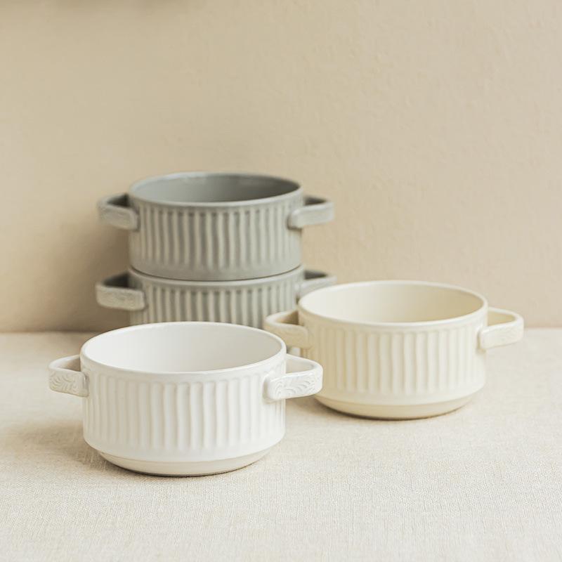 Geprägte vertikale Schüssel Keramik Binaurale Schüssel Restaurant Einfaches Geschirr Gebackene Reisschüssel Haushalts-Schüssel Anti-Verbrühungs-Handgriff-Schüssel