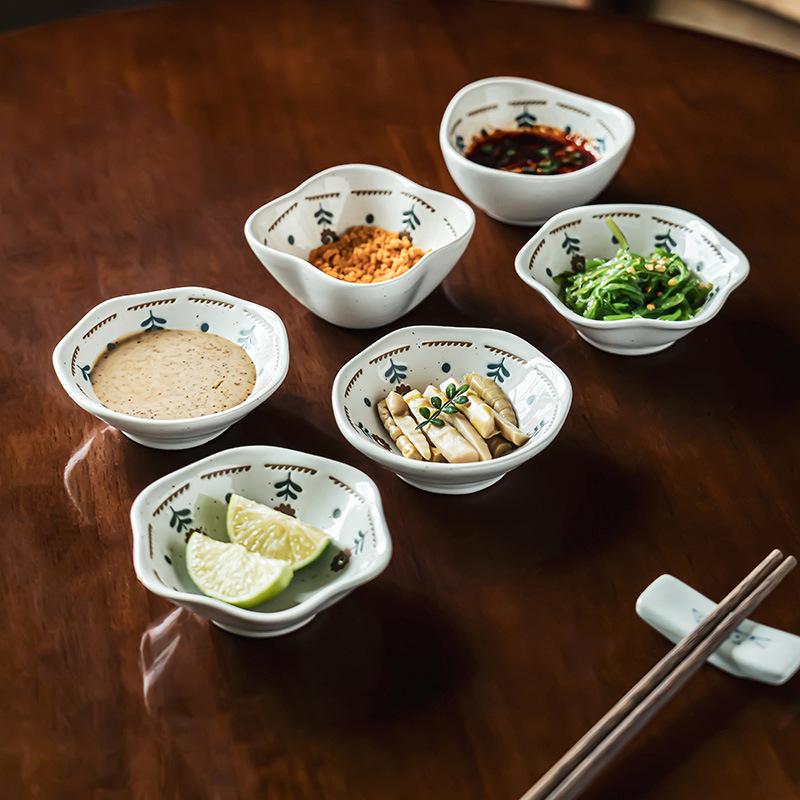 Kreativer kleiner Teller im Retro-Stil mit Saflor-Geschmack, hochwertiger Teller in Blumenform, Haushaltsgeschirr, kleiner Teller, Hot-Pot-Geschmacksteller, Dippschale