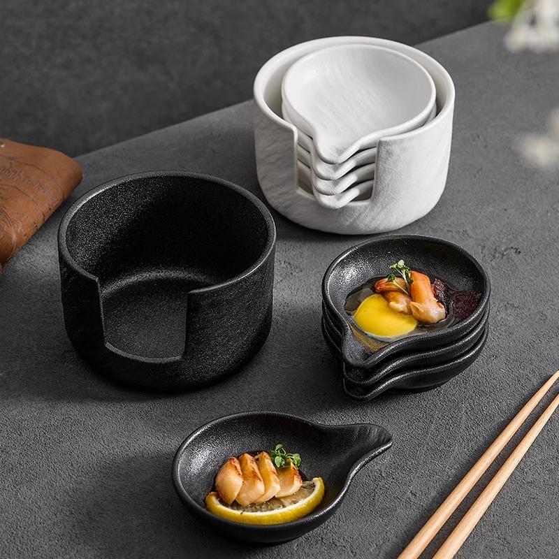 Keramische Gewürzplatte mit Steinstruktur und Aufbewahrung, hochwertige Haushalts-Essigplatte, Hot Pot Snack-Dip-Plattenset-Kombination