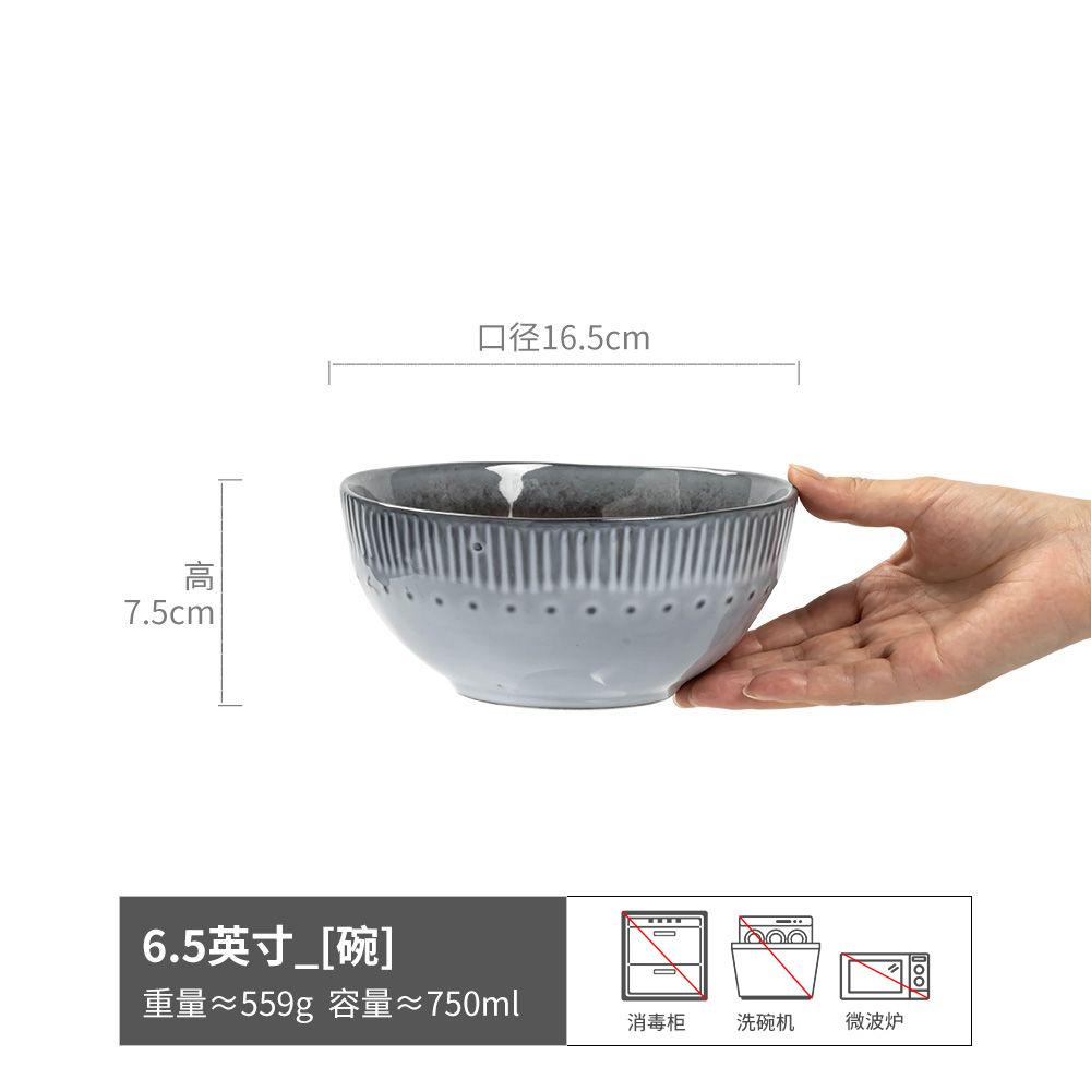 Retro Vertical Pattern Ceramic Bowl Household Dish Bowl Restaurant Noodle Bowl Salad Bowl Characteristic Ice Crack Glaze Tableware Round Bowl