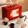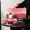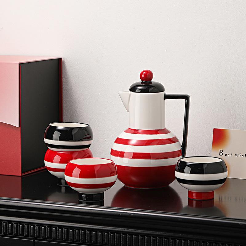 Gestreiftes Wasserset, Keramikkessel für heiß und kalt, Haushalt Hochtemperaturbeständige Teetassen-Kombination Geschenkbox, Speziell für nordischen Stil